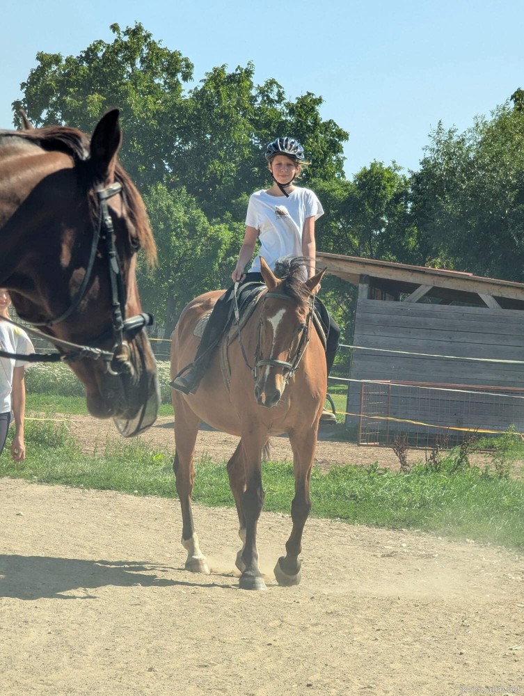 Součástí programu je také každodenní péče o koně – čištění, sedlání i úklid, aby si děti vyzkoušely, co všechno péče o koně obnáší. Tábor ale není jen o koních. Když si koníci odpočívají, děti vyrážejí do přírody, na koupaliště, hrají hry a zapojují se do celotáborové hry.