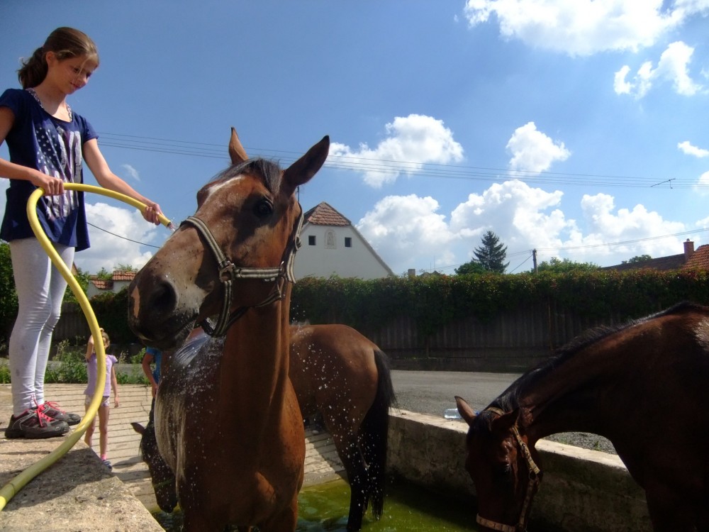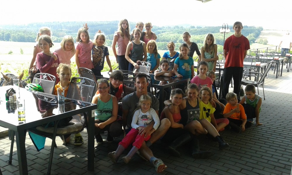 Pro všechny děti se zájmem o koně a přírodu je v rodinném prostředí venkovského statku opět připraven bohatý program u koní. Ježdění, úklid podestýlky, krmení, sedlání. Výuka jízdy na koni je pro nejmenší děti od šesti let až po pokročilé. Během táborů si děti užijí koupání v bazénu, také animační program se spoustou her i vyjížďky do přírody. Děti mají zajištěnu celodenní domácí stravu a pitný režim, ubytování v podkroví statku, lekce jízdy na koni. O děti se starají 3 vedoucí spolu se čtyřmi instruktory, po celý tábor je k dispozici zdravotník.