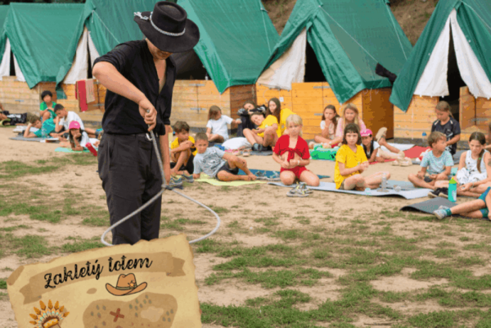 Program tábora je plný tajemství a dobrodružství. Děti se zapojí do napínavého příběhu o starodávném zakletém totemu, který čeká na své zachránce. Společně budou hledat stopy, luštit hádanky a překonávat překážky, aby odhalily tajemství a zlomily kletbu. Čekají je soutěže, akce i dobrodružství v kulisách Divokého západu, zapojí se do aktivit s herci Šiklova mlýna a navštíví strašidelný zámek Draxmoor.